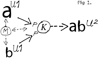 ”M” är i detta diagram de två tävlandes maktrelation. Inom kontexten ”K” i detta exempel, kan den bestå av styrkeförhållandet de tävlande emellan. A kanske har ett bättre personligt rekord än B, samtidigt som B har en erkänt bättre form än A. A har dessutom varit skadad en tid och precis börjat tävla igen. Relationen påverkar inte bara resultatet utan resultatet återverkar också på maktrelationen. Om B skulle slå A för första gången kanske maktrelationen förändras drastiskt.[1]